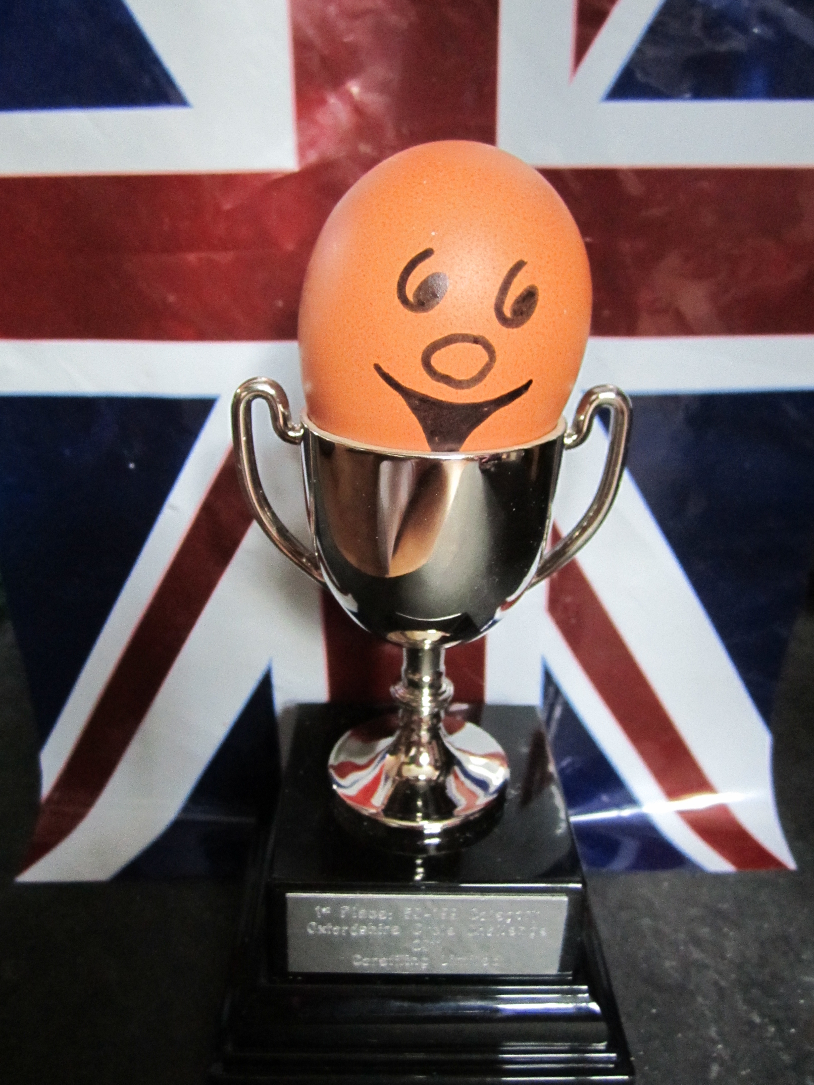 We gathered around yesterday and greeted the person running the challenge, who was slightly embarrassed as she had spent the day “just dropping the prizes off at reception.” She handed out the plaques (three – we had two first place and one third place finish) and then… then… she pulled out the trophy…